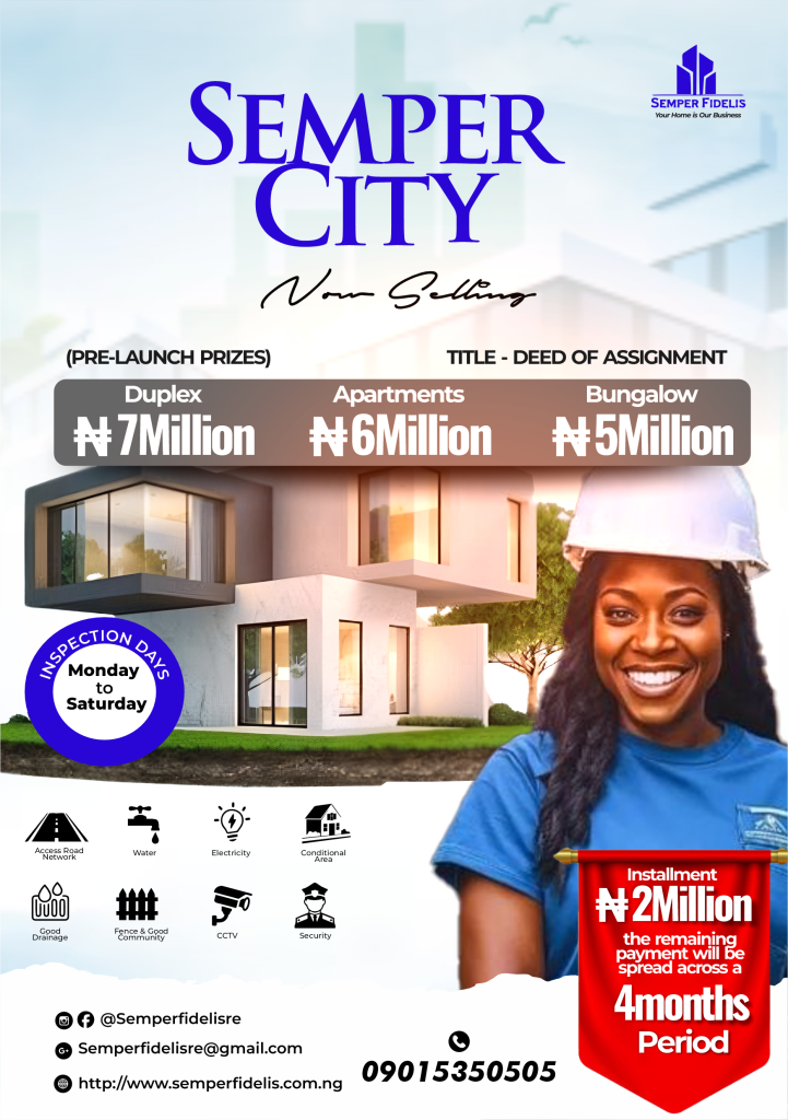 Semper Homes is a cutting-edge real estate company dedicated to increasing access to homes and property ownership in Enugu State and across Nigeria.